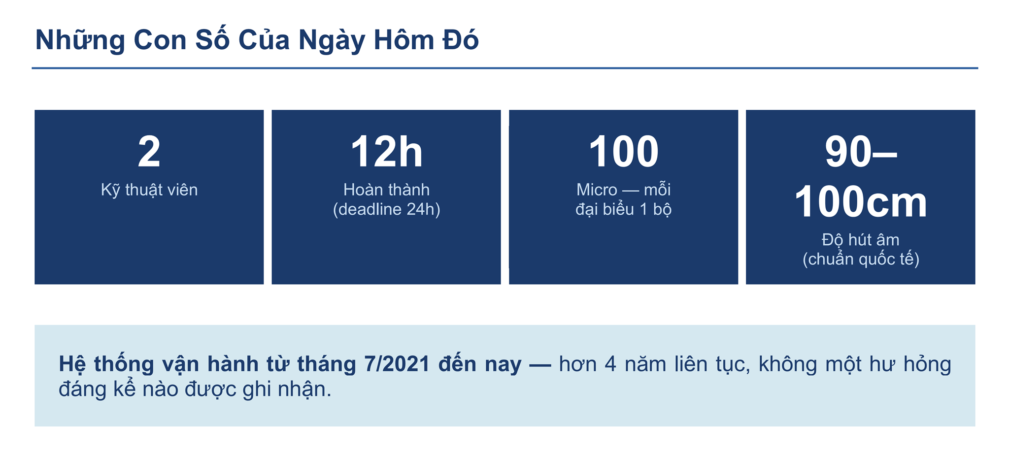 Hội trường sẵn có hệ thống âm thanh lắp đặt từ nhiều năm trước. Nhưng đây không phải lúc dùng hệ thống cũ. Vì yêu cầu lần này chưa từng có tiền lệ: mỗi đại biểu phải có một micro riêng, không được sử dụng chung, không được truyền tay, không có bất kỳ nguy cơ lây nhiễm chéo nào. 100 đại biểu, 100 micro, ngồi giãn cách hoàn toàn trong hội trường 18m × 30m.