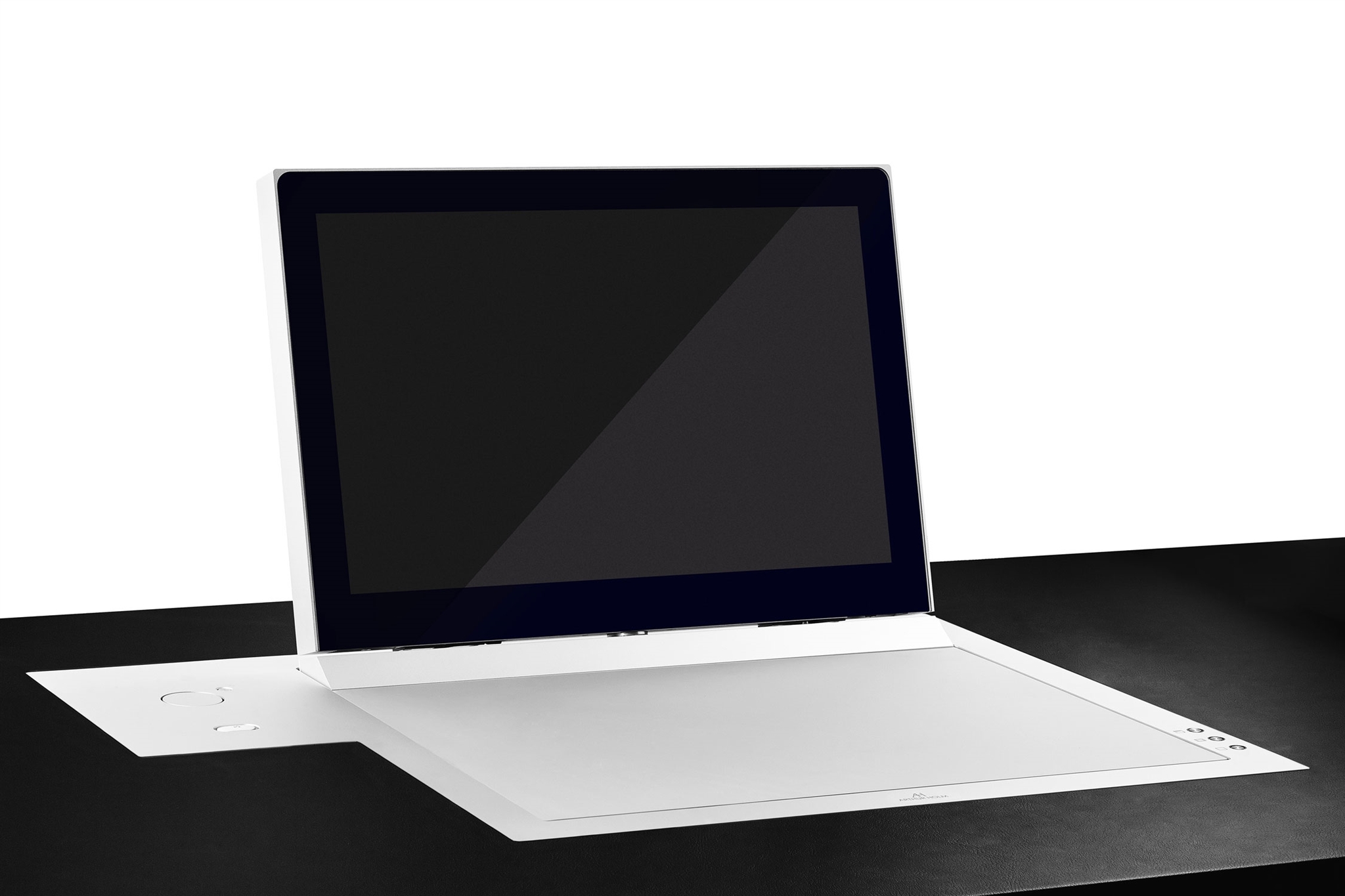 Màn hình có thể nâng lên và nghiêng, với chuyển động xoay 180° bổ sung (và tùy chọn) và thu lại vào bên trong bề mặt làm việc ở hai vị trí khác nhau: màn hình hướng lên trên hoặc hướng xuống dưới.